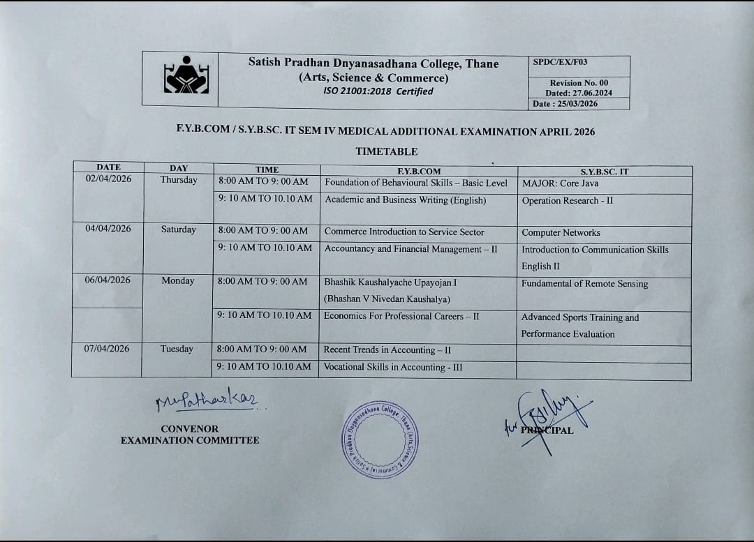 The schedule of examinations is in accordance with the University Calendar and as per the university guidelines.