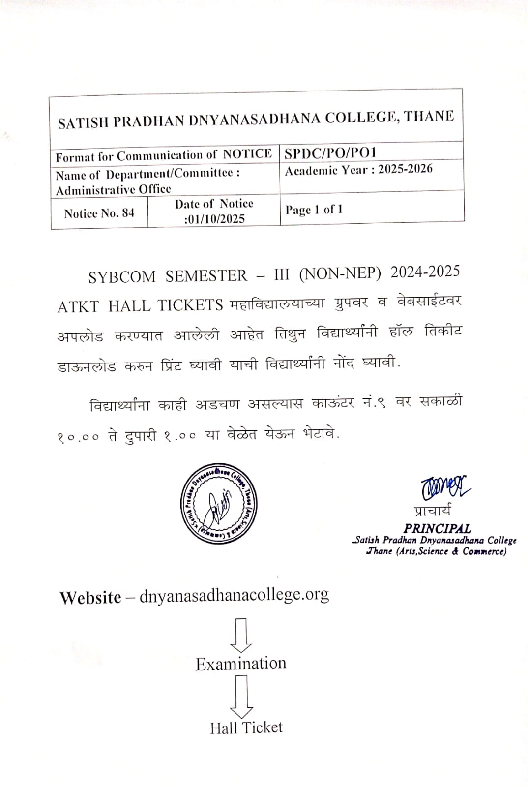 Dnyanasadhana, Thane Society's Satish Pradhan Dnyanasadhana College, Thane (Arts, Science and Commerce) Re-Accredited "B+" Grade (CGPA 2.69) by NAAC, ISO 21001:2018 (Certified) Affiliated To University of Mumbai