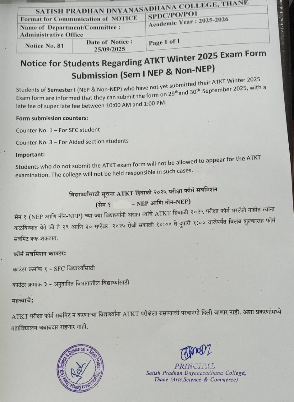 ATKT Sem I Winter 2025 Exam Notice (NEP & Non NEP)